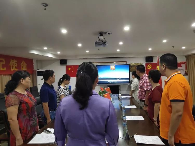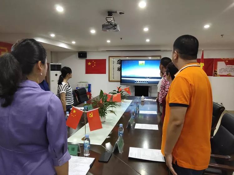9時(shí)35分,支部大會(huì)在莊嚴(yán)肅穆的中華人民共和國(guó)國(guó)歌聲中正式開始。全體人員一起高唱國(guó)歌。